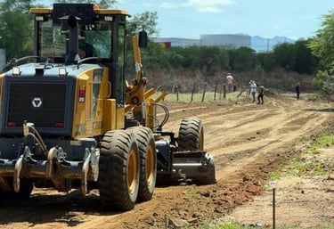 Executamos abertura de ruas, estradas e acessos com infraestrutura completa. Ideal para loteamentos, chácaras e áreas industriais