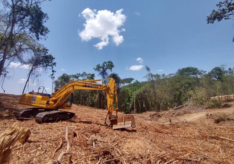 Precisa preparar um terreno com vegetação densa? Nossa equipe executa desmatamento e destocamento com equipamentos próprios e técnicos especializados, respeitando normas ambientais e garantindo a segurança da área.
